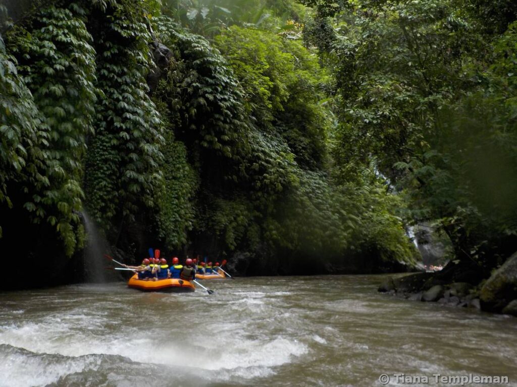 Despite the ongoing tourism development in and around Ubud, it’s not hard to imagine you are back in the ‘Bali of old’ as you float down the river surrounded by nothing but jungle. You don’t need to do much hard work as the river gently takes your raft on its journey. The only time we had to use our paddles was for steering down a few of the larger rapids and a little bit of paddling here and there. I wore thongs on our three hour tour but sports sandals or even some (old) sneakers would have been better as you have to get out of the rafts and walk near the beginning of the trip which was a little tricky in my slippery thongs. Another tip is bring some water into the raft with you as it can get hot out on the river in the sunny sections.