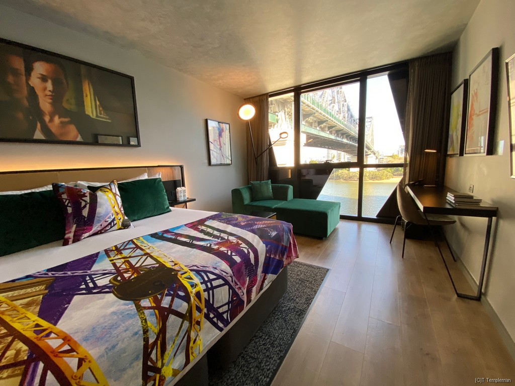 All of the rooms are elegantly modern and come with multiple Vincent Fantauzzo prints. Which room you book comes down to price and the view you want, with river views costing more and rooms facing the area’s famous cliffs available at a reduced rate. We stayed in a Promenade room with a view of the Story Bridge and Brisbane River. One point of note is the full-length riverfront windows which allow amazing views of the river and the CBD from some of the rooms (and of you if you forget to close the curtains and there are people walking past who happen to look up).