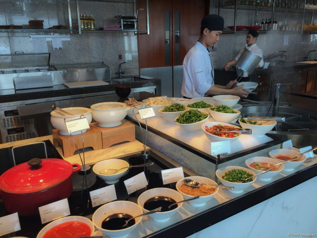 I awake early to a VERY warm Hanoi day and make my way down to 3 Spoons restaurant on level 62 for breakfast. As a club floor guest, you have the choice of breakfast in either the club lounge or 3 Spoons. With such an extensive range of European, Asian and American choices I find 3 Spoons a bit overwhelming in my jetlagged state. I opt for a made-to-order omelette from one of the chef stations and try the fresh juice of the day. Hhmm, beetroot and lime? No, it’s definitely not for me. I ask to exchange it for a fresh pineapple and orange juice that is fabulous and order a latte which arrives with no additional charge. 3 Spoons opens for breakfast, lunch and dinner and serves everything from classic Chinese and Vietnamese dishes to pizza, pasta and burgers.