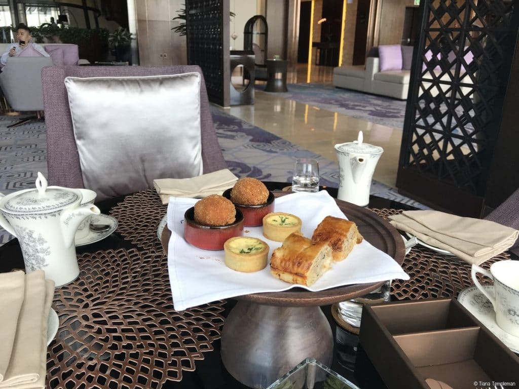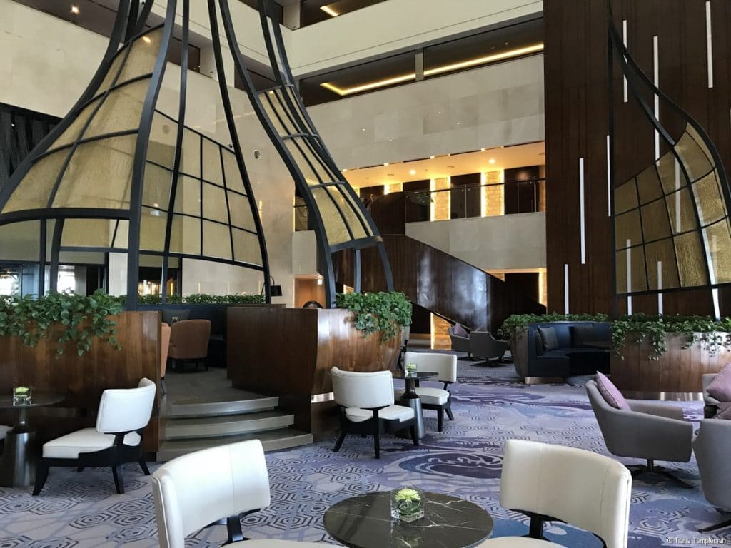 With jetlag looming I retire to my room where my bags have been neatly arranged next to the wardrobe. The room is large with a soft king size bed and a large bathroom with a tub and rain shower, plus king size bath sheets which add another luxurious touch. All the mod cons are also on hand such as a work desk with multiple connections and adapters, a mini bar and a coffee pod machine. However, with the club lounge staff willing and always ready to offer complimentary coffees on request I have no need for the machine.