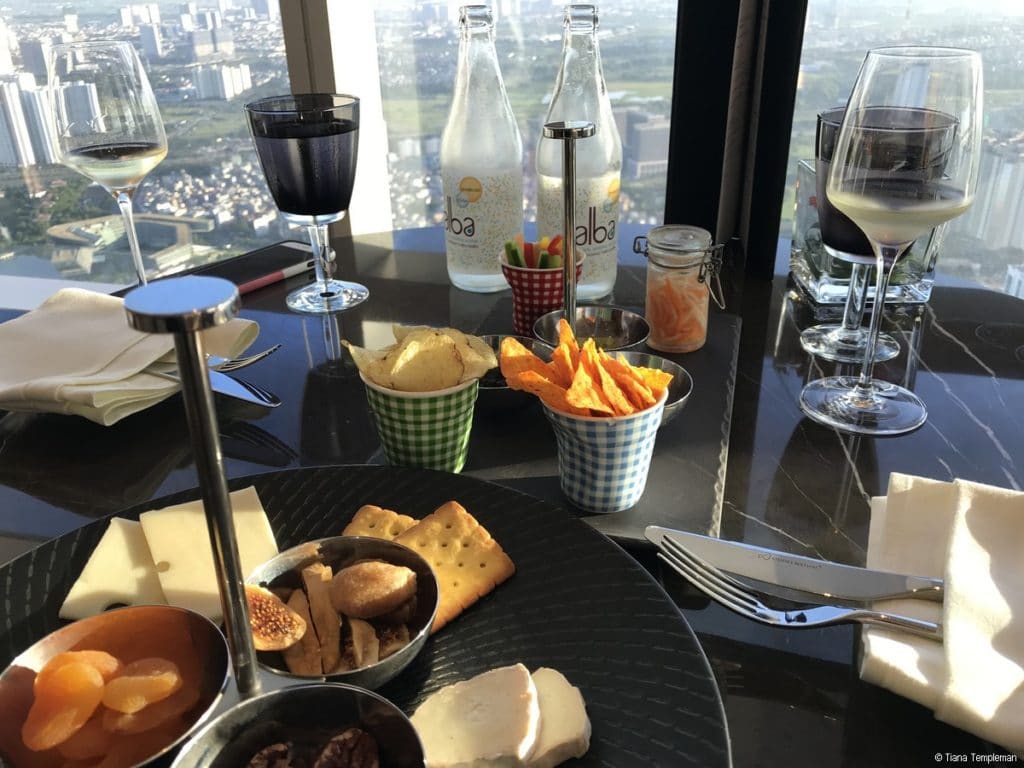 Before dinner, I had time to drop into the club lounge for a pre-dinner snack and a glass of wine. Unlike some club lounges, all of the food at the InterContinental Hanoi Landmark 72 club is ordered off a menu. It comes as a ‘set’ so you get quite a bit of hot and cold food, all beautifully presented. The photograph below features the cold component of the ‘set’ and was followed by a hot selection featuring items such as spring rolls and dainty kebabs. Serving the food to the table gives the club an extra luxurious feel but may not appeal to those who prefer to graze, or just grab a few quick nibbles to enjoy with drinks before they head out to dinner or an evening appointment with clients.