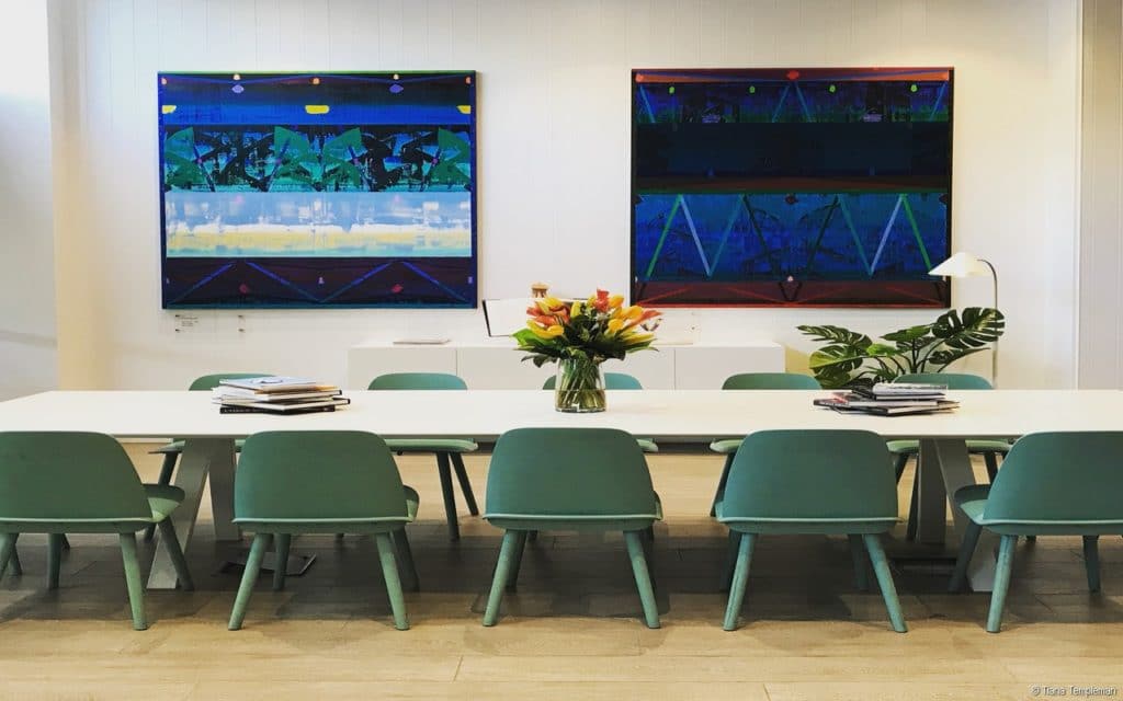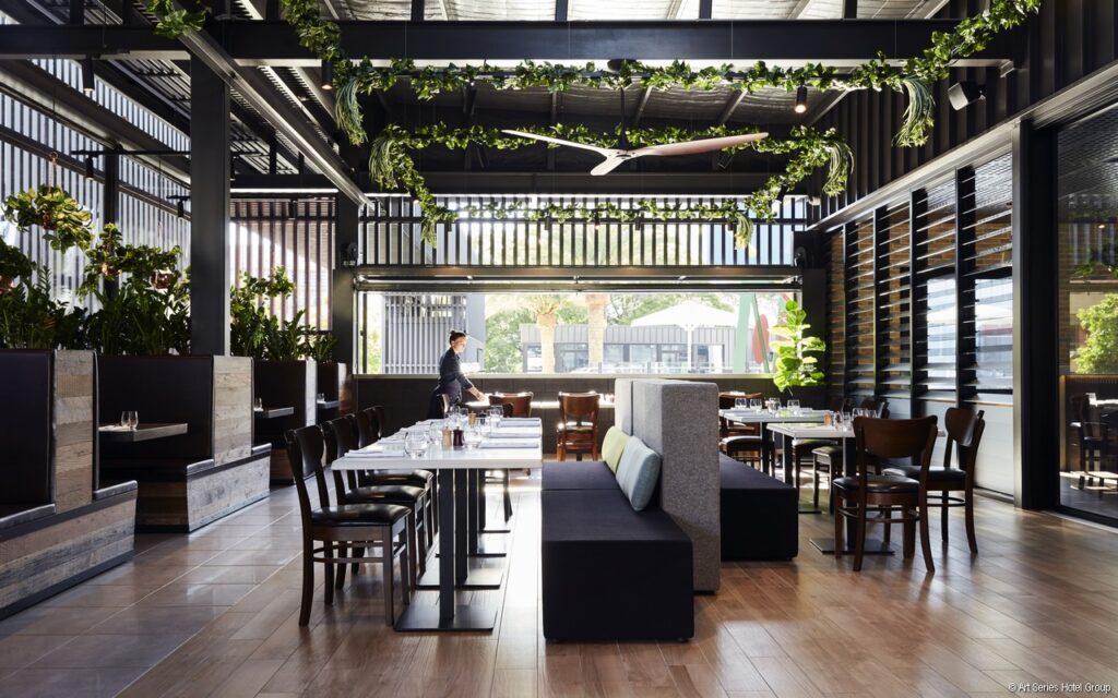 We love staying at art hotels and signed up for The Johnson’s hotel art tour in advance. Our guide was a lovely guy but he didn’t do the art tours often and had to read pretty much everything word for word off a piece of paper. Offering a self-guided tour could be a better option, especially as guests have to make a special appointment for the tour. Outside on level 5, you’ll find a glam 50-meter pool and sun deck. Inside the hotel, near the pool deck, there is also a gymnasium decorated with, you guessed it, beautiful Michael Johnson prints. Another highpoint is the on-site restaurant Tumbling Stone, named after one of Michael Johnson’s best known pieces. Its light and airy decor featuring louvres and plenty of greenery, is very much in keeping with Queensland’s obsession with the great outdoors.