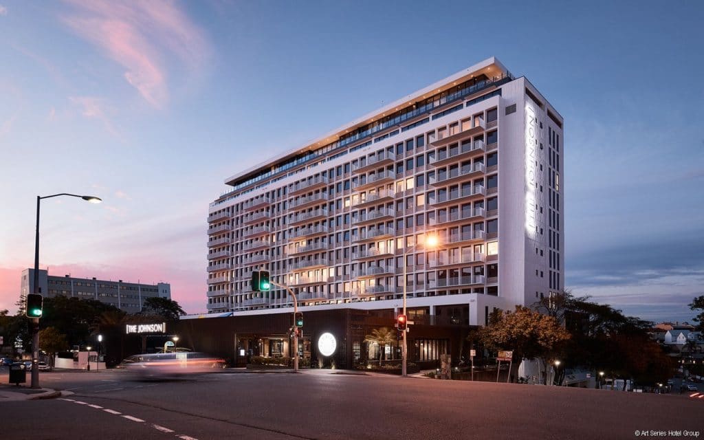 The Johnson is a member of the Mantra operated Art Series Hotel Group collection which pays tribute to Australian contemporary artists such as John Olson, indigenous artist Tommy Watson and Zhong Chen. The group’s first Brisbane hotel features works from abstract artist, Michael Johnson, who spent time living and working Queensland early in his career. Some of the paintings throughout the hotel reflect the blues, greens, browns and (very abstract) palm trees of Tropical North Queensland.