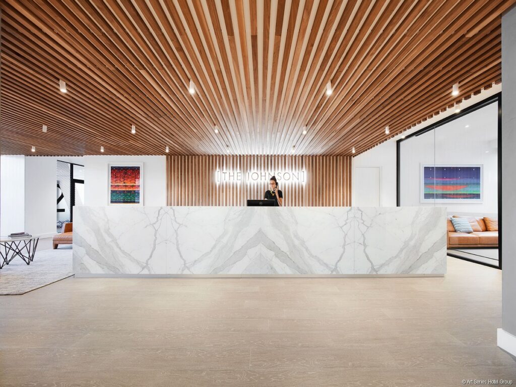 Checking into The Johnson, it’s immediately apparent that art is a highlight, from Johnson’s large feature painting near reception to the stacks of art books in the nearby reading room. There are over 400 Michael Johnson prints throughout the hotel. Even you stayed numerous times, you would never tire of finding a new print on the wall each time you checked into a different room.