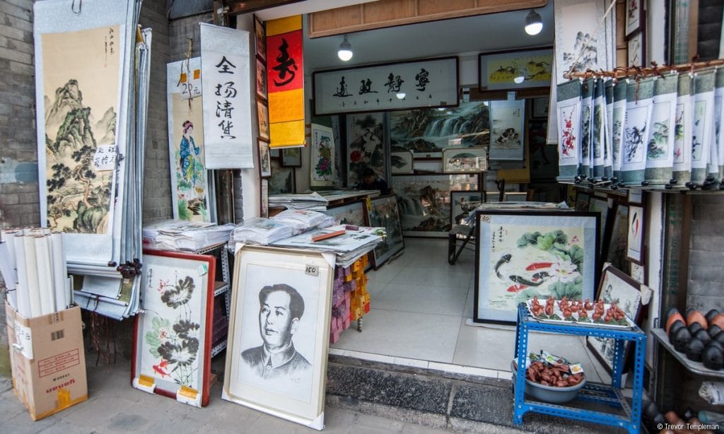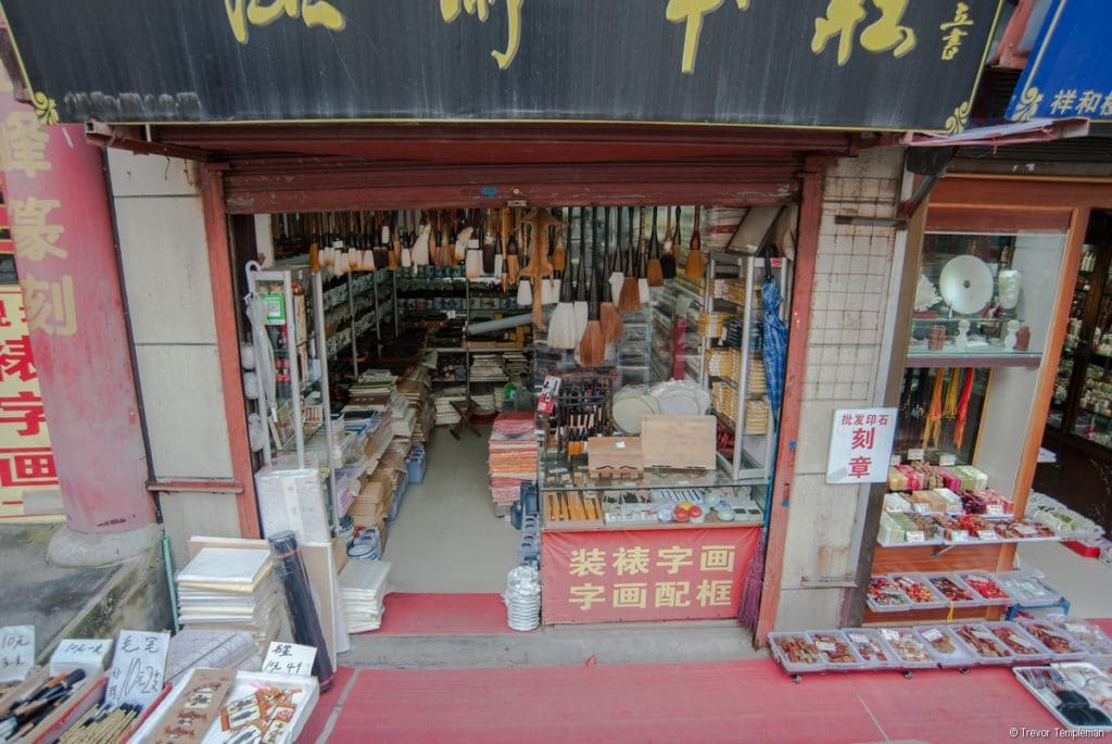 It seemed fitting that we walked from here to the street known as Calligraphy Street which was filled with shops selling everything from parchment and ink to brushes of every shape and size, including the big ones we saw in the park. If you would like to bring back a quintessential Xi’an souvenir, you will find it here. I was tempted by all the beautiful inks, even though I am not sure what I would have done with them when we got home.